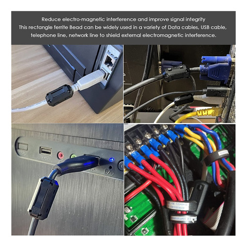 Este talão retangular de ferrite pode ser amplamente utilizado em uma variedade de cabos de dados, cabos USB, telefone, rede para proteger a interferência eletromagnética externa.