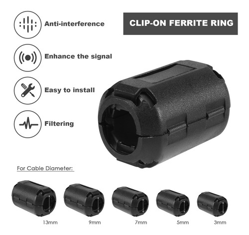 20 * Supressor de ruído Clip- Ferrite Ring Core RFI EMI
