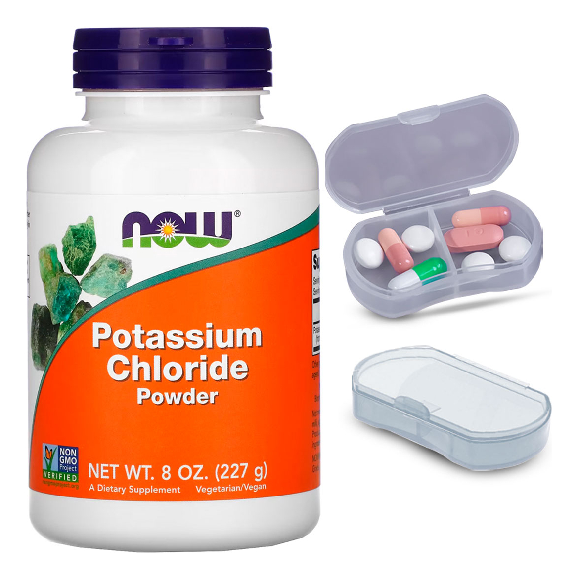 Kit Cloreto em Potássio Pó Now Foods 227g + Porta Cápsulas Suporte Nutricional Eficiente: O Cloreto de Potássio da Now Foods oferece um suporte nutricional focado, sendo uma opção para quem busca um complemento específico para a sua rotina alimentar. Com 227g por embalagem, este produto é uma escolha prática para uso diário. Praticidade em Pó: A forma em pó deste suplemento garante uma utilização versátil e eficaz. Pode ser facilmente misturado a bebidas ou alimentos, proporcionando uma maneira conveniente e discreta de incluir o Cloreto de Potássio na sua dieta. Qualidade Importada com Pronta Entrega: Este produto importado da Now Foods assegura alta qualidade. Disponível para pronta entrega, ele permite que você comece a utilizá-lo rapidamente, sem longas esperas. Porta Cápsulas com Duas Repartições: O kit também inclui um porta-cápsulas prático, dividido em duas seções internas. Isso permite uma organização eficaz e separada de diferentes tipos de cápsulas ou pílulas. Composição sem Sódio: Este suplemento oferece o Cloreto de Potássio em uma forma pura e sem adição de sódio, proporcionando uma opção focada para aqueles que buscam evitar o sódio em sua dieta. VALIDADE LONGA