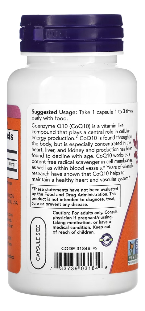4. Integração Simples no Dia-a-Dia: A CoQ10 da Now Foods pode ser facilmente adicionada à sua rotina diária. As cápsulas são ideais para consumo em qualquer momento, sem necessidade de preparo especial, facilitando sua adesão ao suplemento sem interrupções em seu cotidiano.