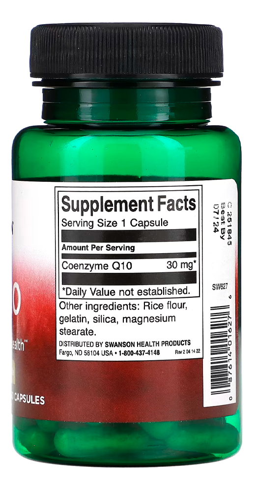 5. Formulação Pura e Direcionada: Cada cápsula contém 30mg de Coenzima CoQ10, sem a adição de ingredientes artificiais, garantindo a pureza e eficácia do suplemento. A Swanson foca na qualidade e na integridade dos seus produtos. Validade longa