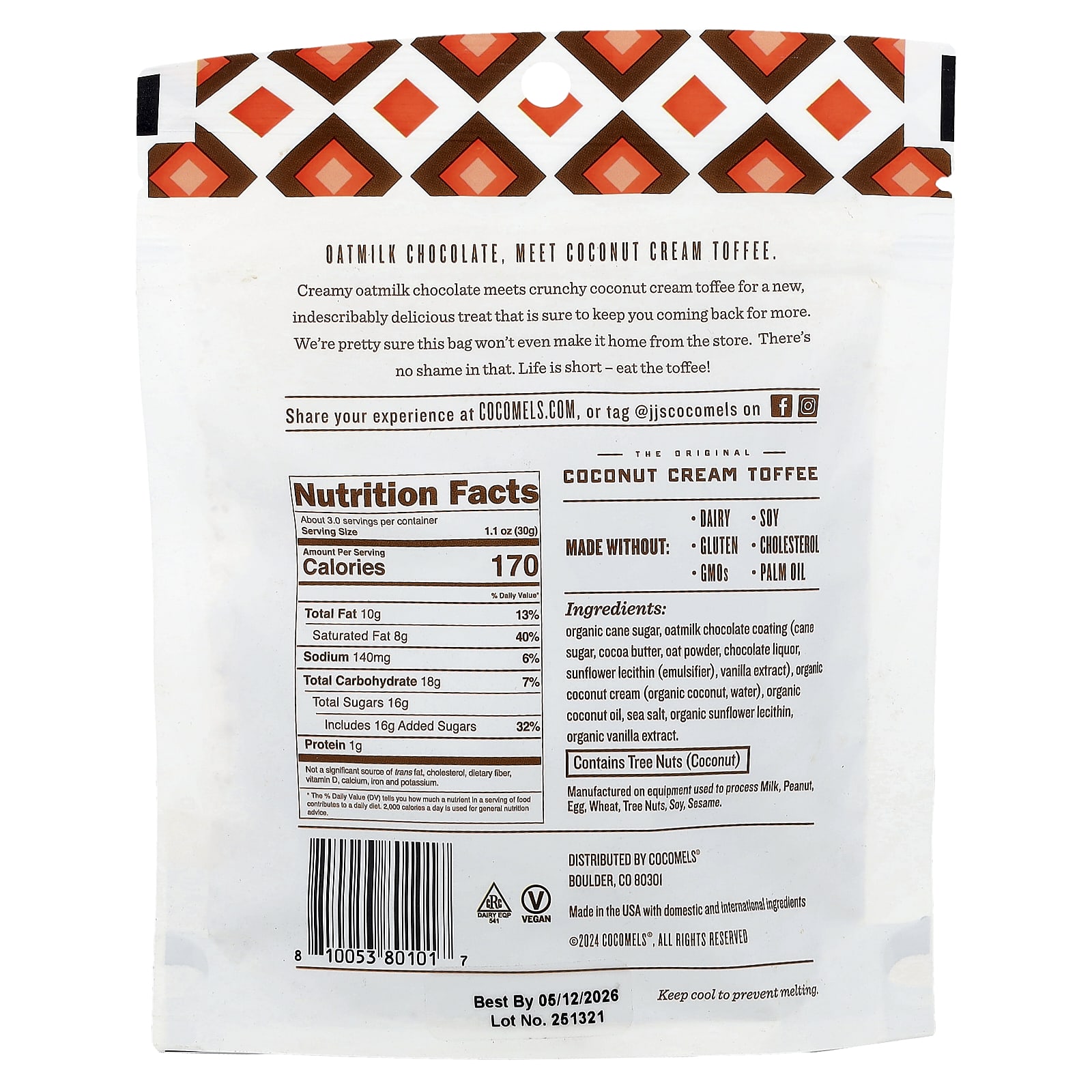 O chocolate ao leite de aveia cremoso se encontram com o caramelo de coco crocante para proporcionar uma guloseima nova e indescritivelmente deliciosa que com certeza fará você sempre ter vontade de quero mais. Temos certeza de que esta embalagem nem chegará em casa da loja. Não há modéstia ao fazer isso. A vida é curta; coma o caramelo!