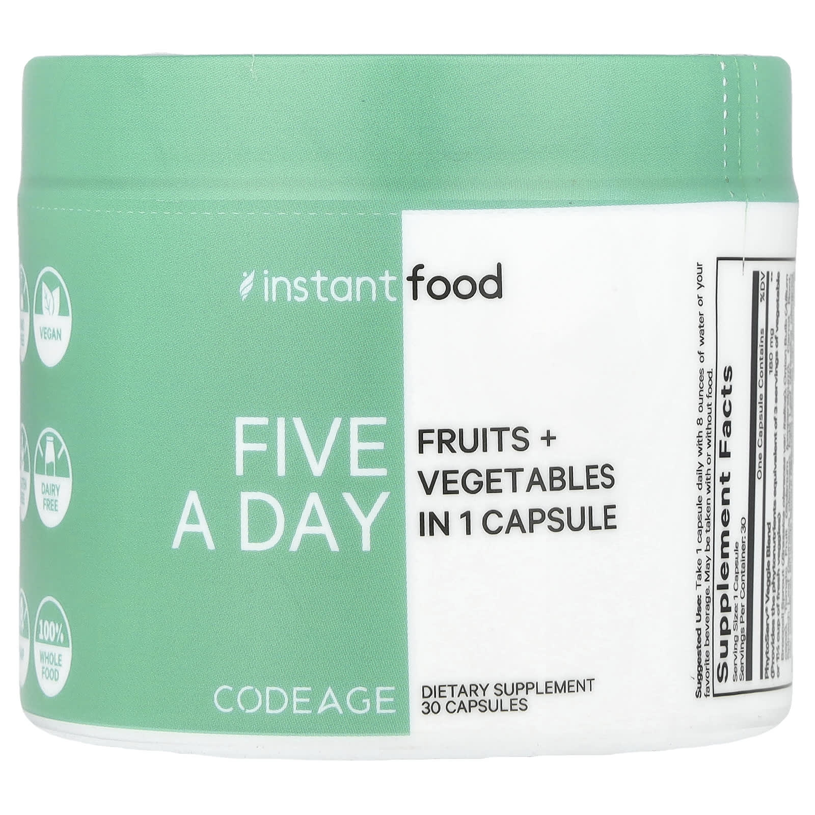 Codeage 5 por Dia Frutas + Vegetais em 1 Cápsula 30 Cápsulas – Codeage Suplementos Superalimentos Misturas de Verduras e Superalimentos Misturas de Superfrutas.