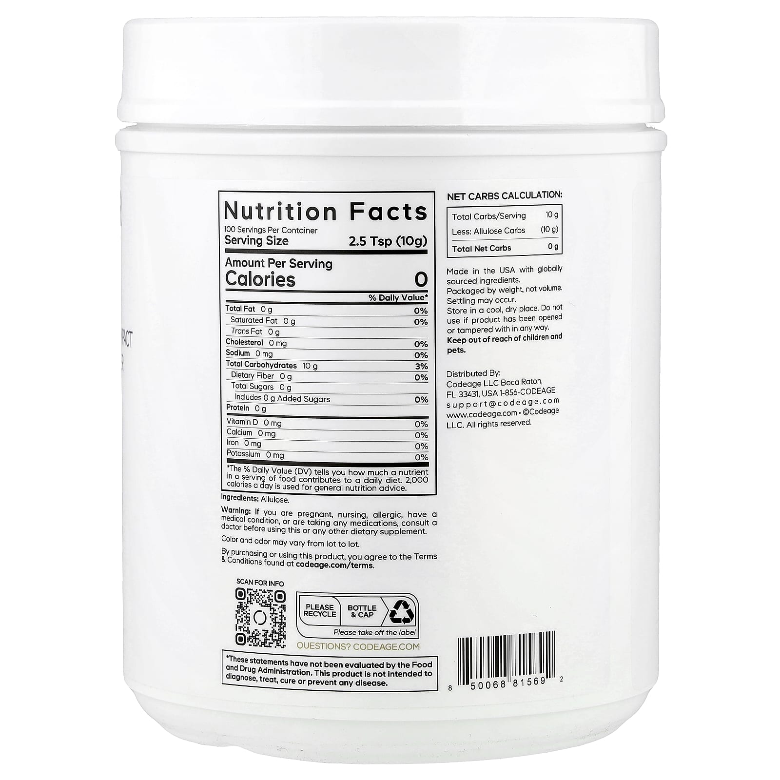 Codeage Allulose com Açúcar Milagroso em Pó Sem Sabor 1 kg (3527 oz) – Codeage Alimentos Mel e adoçantes Alulose.