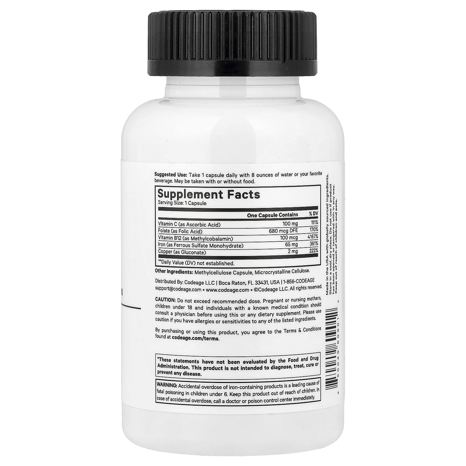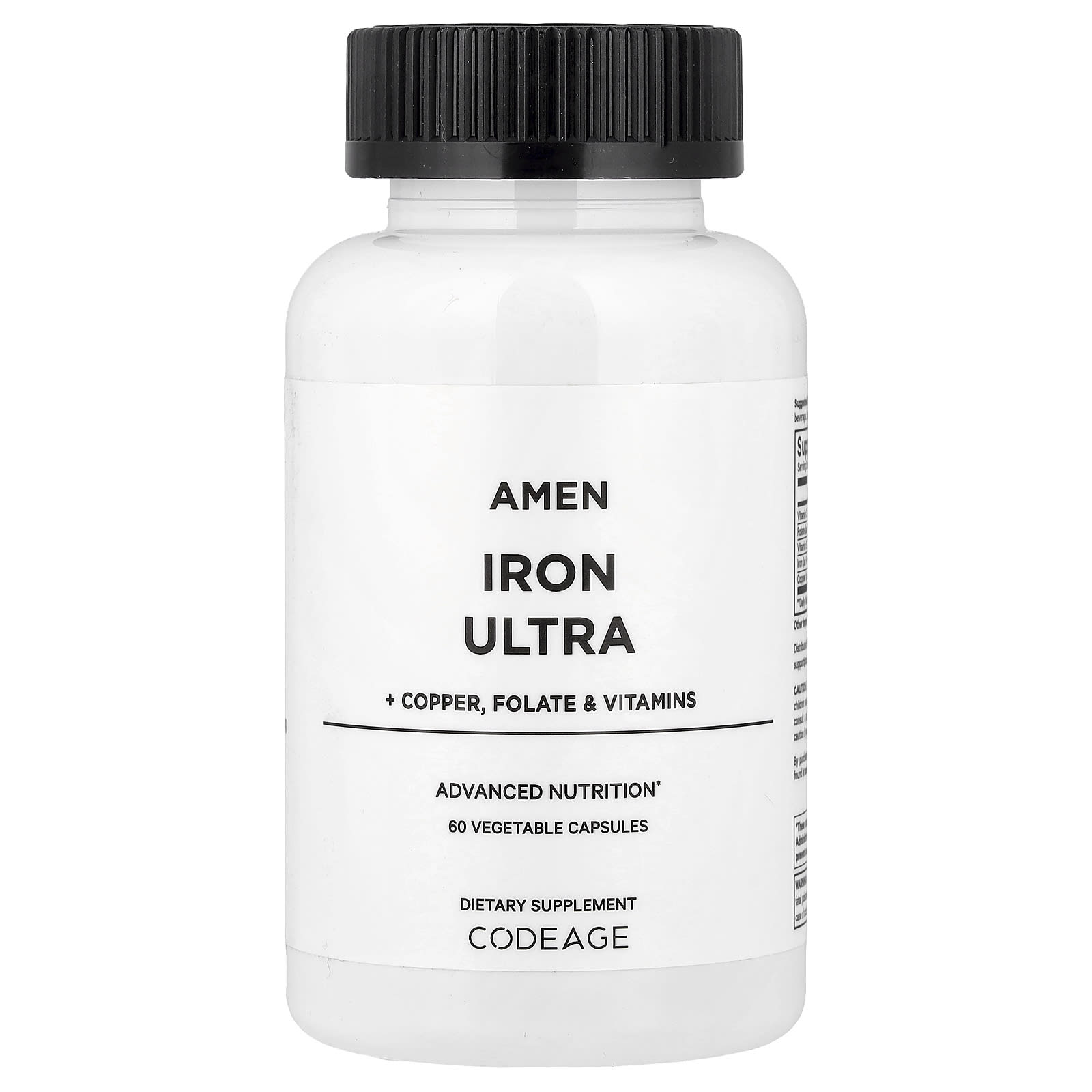 Codeage Amen Ferro Ultra 60 Cápsulas Vegetais – Codeage Suplementos Minerais Ferro Sulfato Ferroso Cobre.