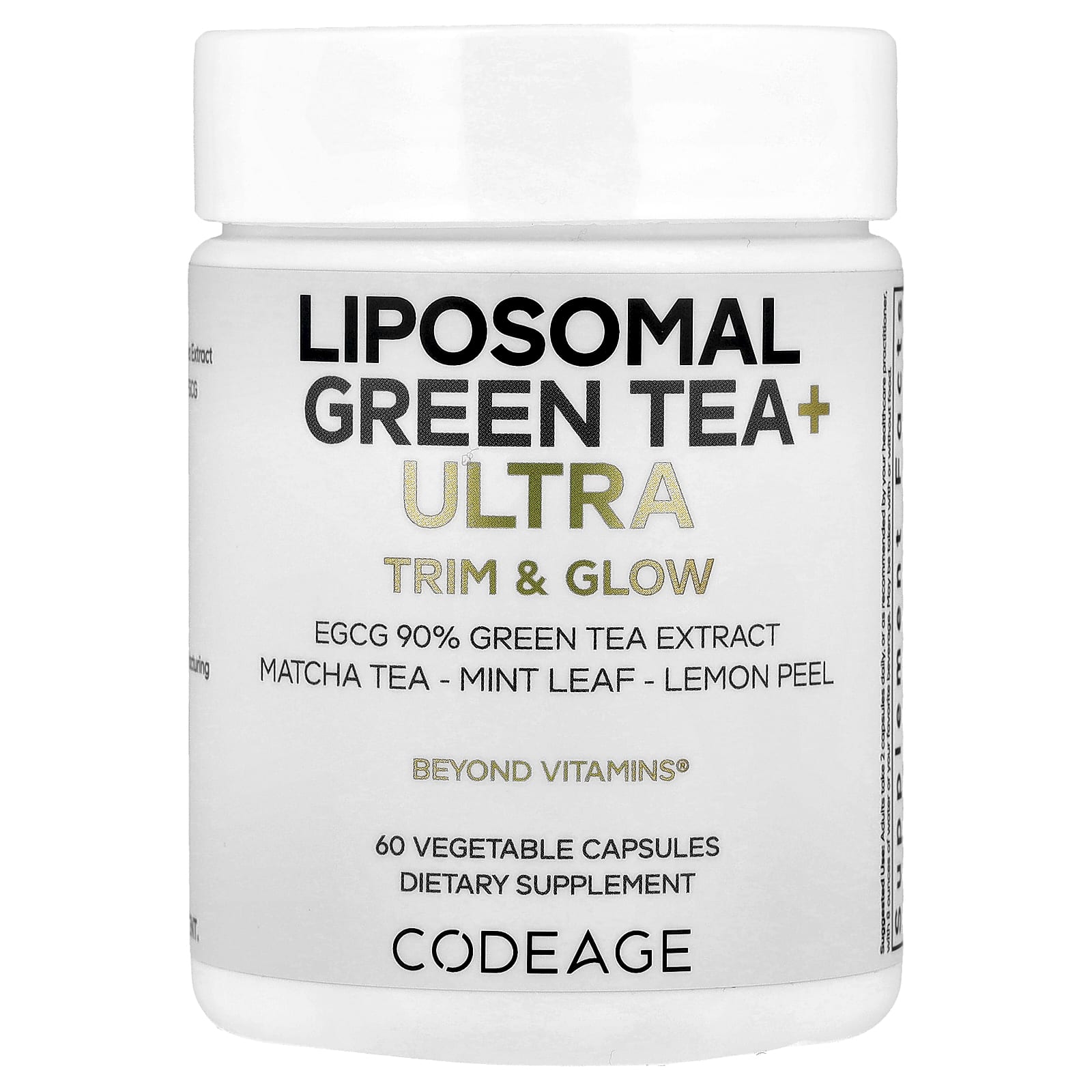 - O Chá Verde Lipossomal+ Ultra da Codeage fornece extrato de chá verde padronizado para 90% de EGCG para uma experiência aprimorada e ultrapremium de chá verde.