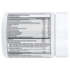 Clearface da Codeage oferece um suplemento vegano, integral e completo com as vitaminas A, C, D3 e E, ácido nicotínico, riboflavina, ácido pantotênico, minerais, fitoceramidas, probióticos, ômega-3, Cloridrato de L-lisina e uma mistura de ervas desenvolvida para complementar sua rotina de cuidados com a pele.