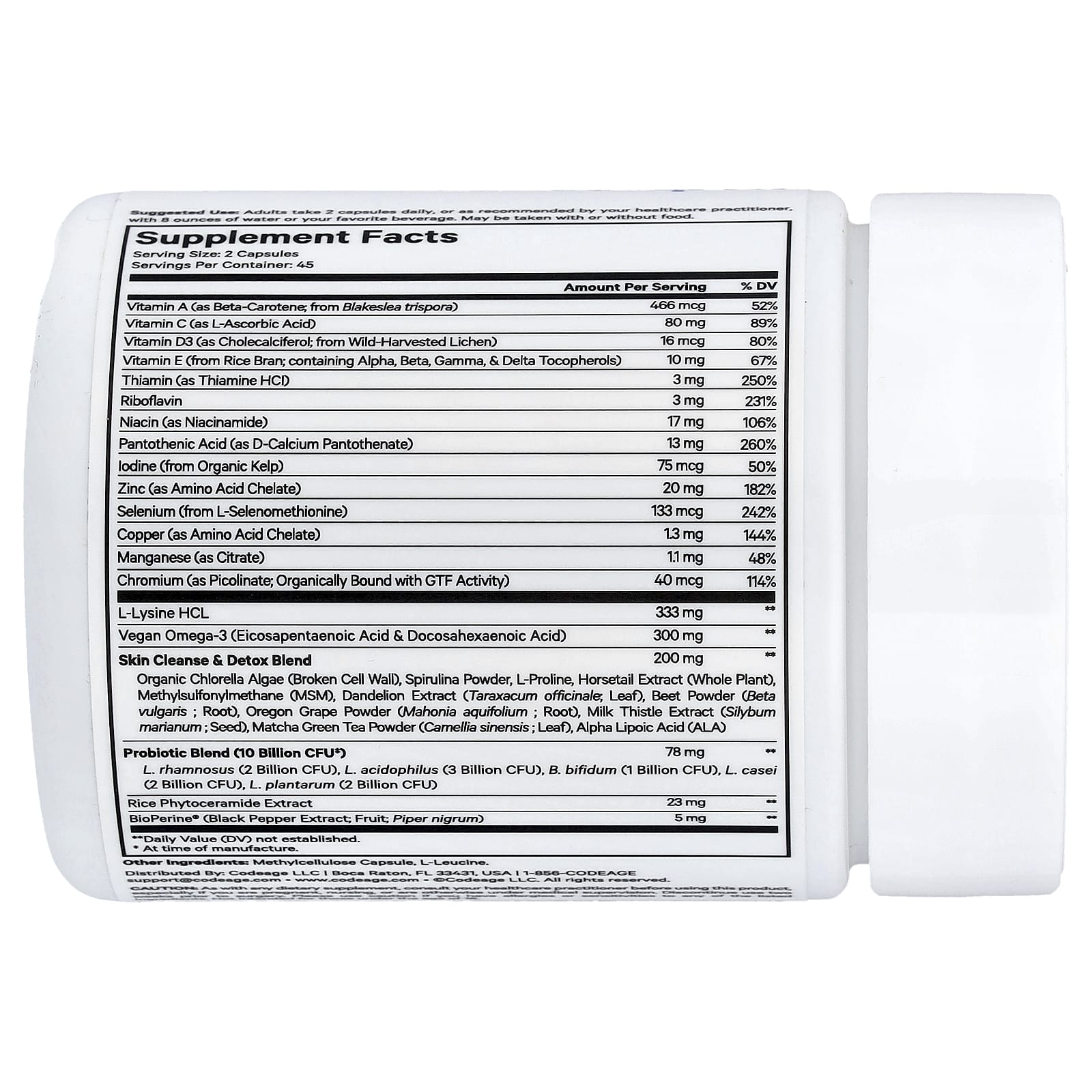 Codeage Clearface Vitamins+ 90 Cápsulas Vegetais – Codeage Suplementos Vitaminas Multivitamínicos Cabelos, Pele e Unhas Fórmulas para cabelos, pele e unhas.