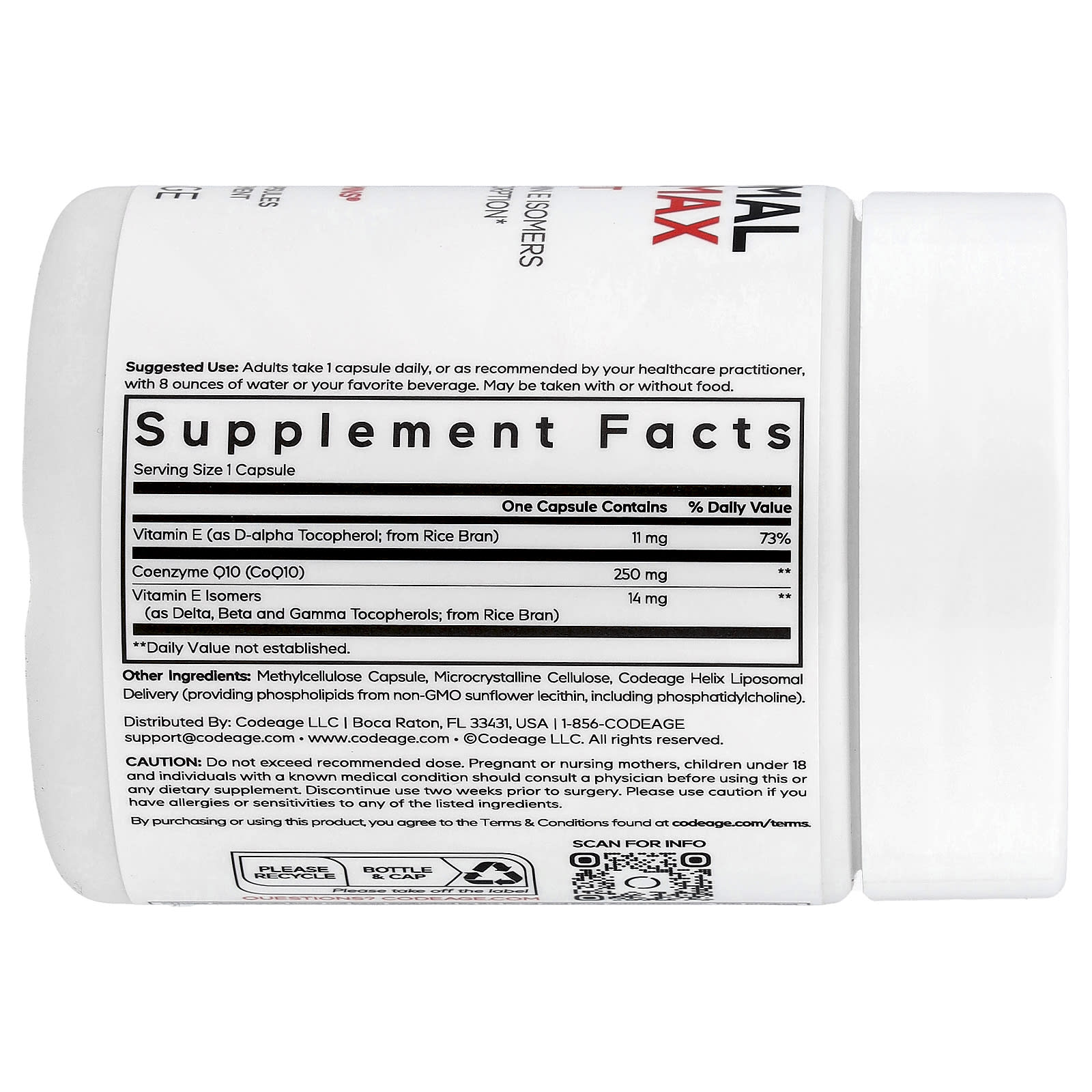 CoQ10 Max Lipossomal da CodeAge fornece 250 mg de Coenzima Q10 por dose com apenas uma cápsula por dia. Este suplemento avançado de CoQ10 também inclui Vitamina E, isômeros de vitamina E e uma fórmula lipossomal feita com um complexo fosfolipídico.