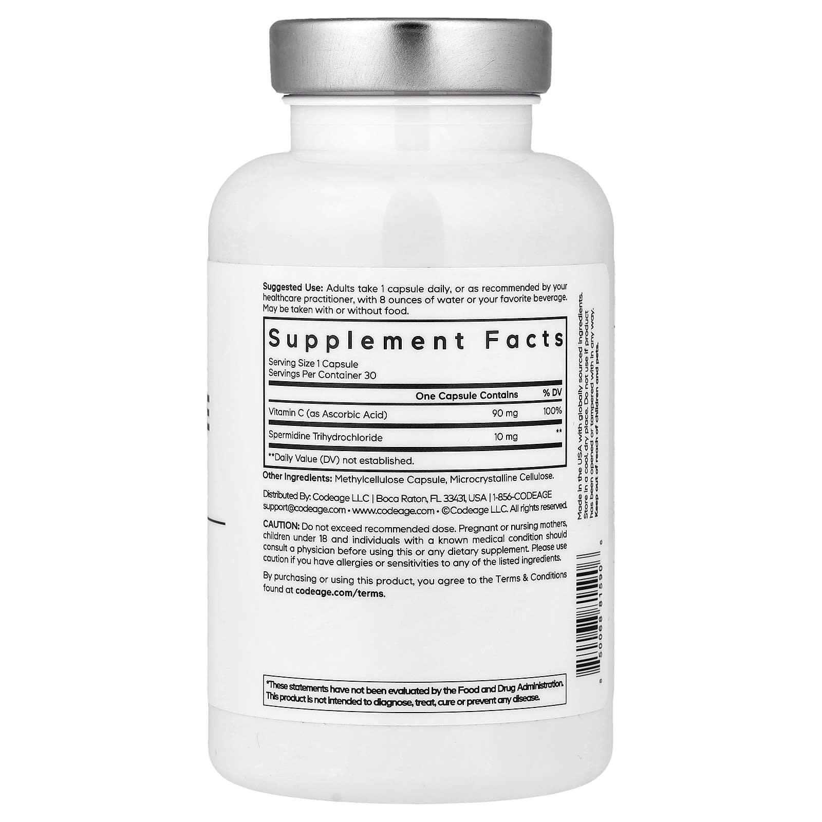 Codeage Espermidina 30 Cápsulas Vegetais – Codeage Suplementos Antioxidantes Espermidina.