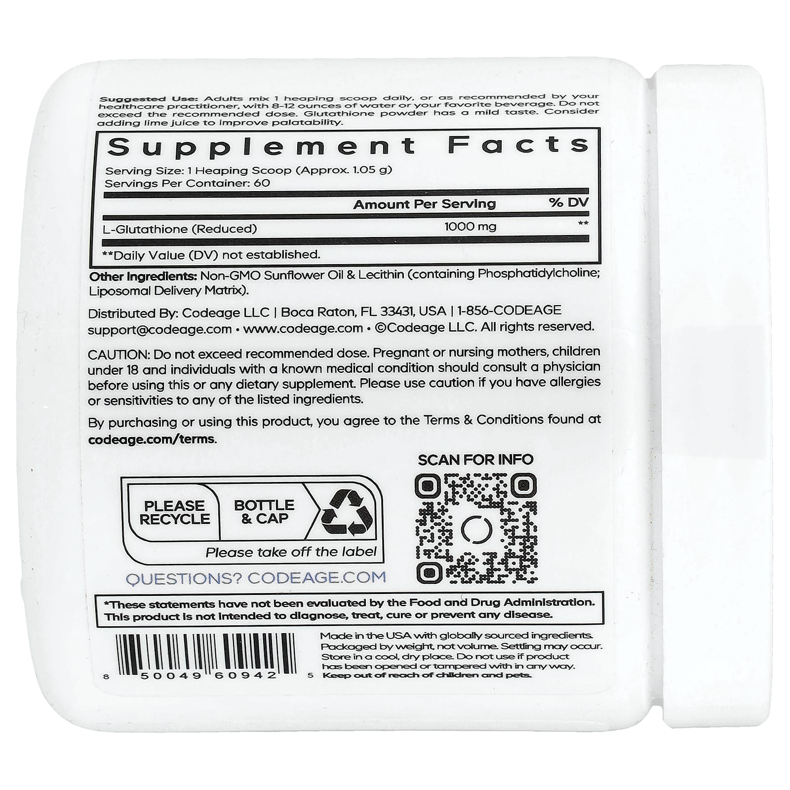Codeage Glutationa Lipossomal em Pó Sem Sabor 63 g (222 oz) – Codeage Suplementos Antioxidantes Glutationa.