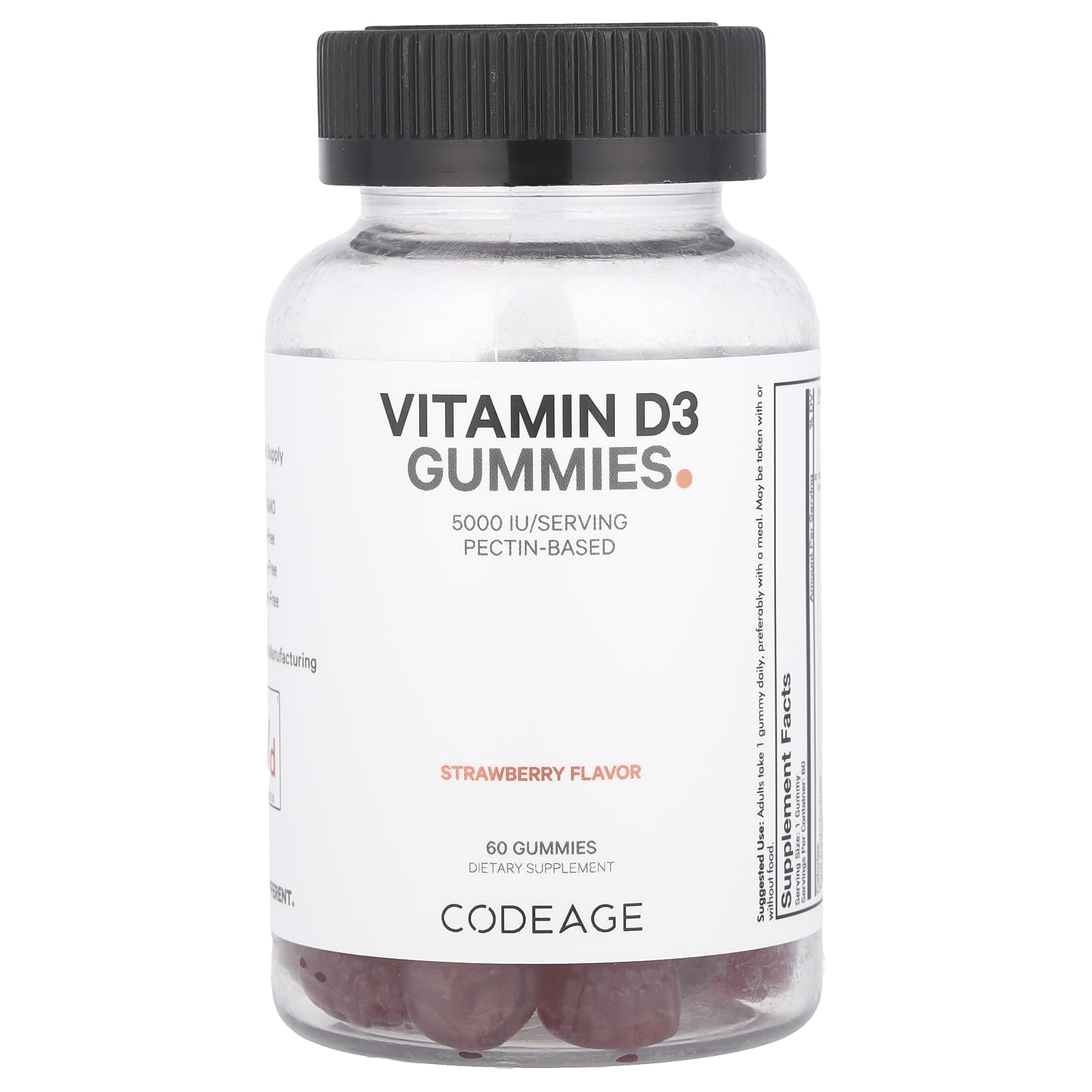 Codeage Gomas de Vitamina D3 Morango 5.000 UI 60 Gomas – Codeage Suplementos Vitaminas Vitamina D.