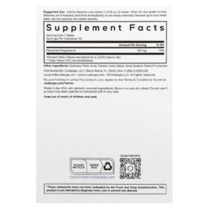 Codeage Hidrogênio Molecular Sem Sabor 30 Comprimidos Efervescentes – Codeage Suplementos Minerais Magnésio.
