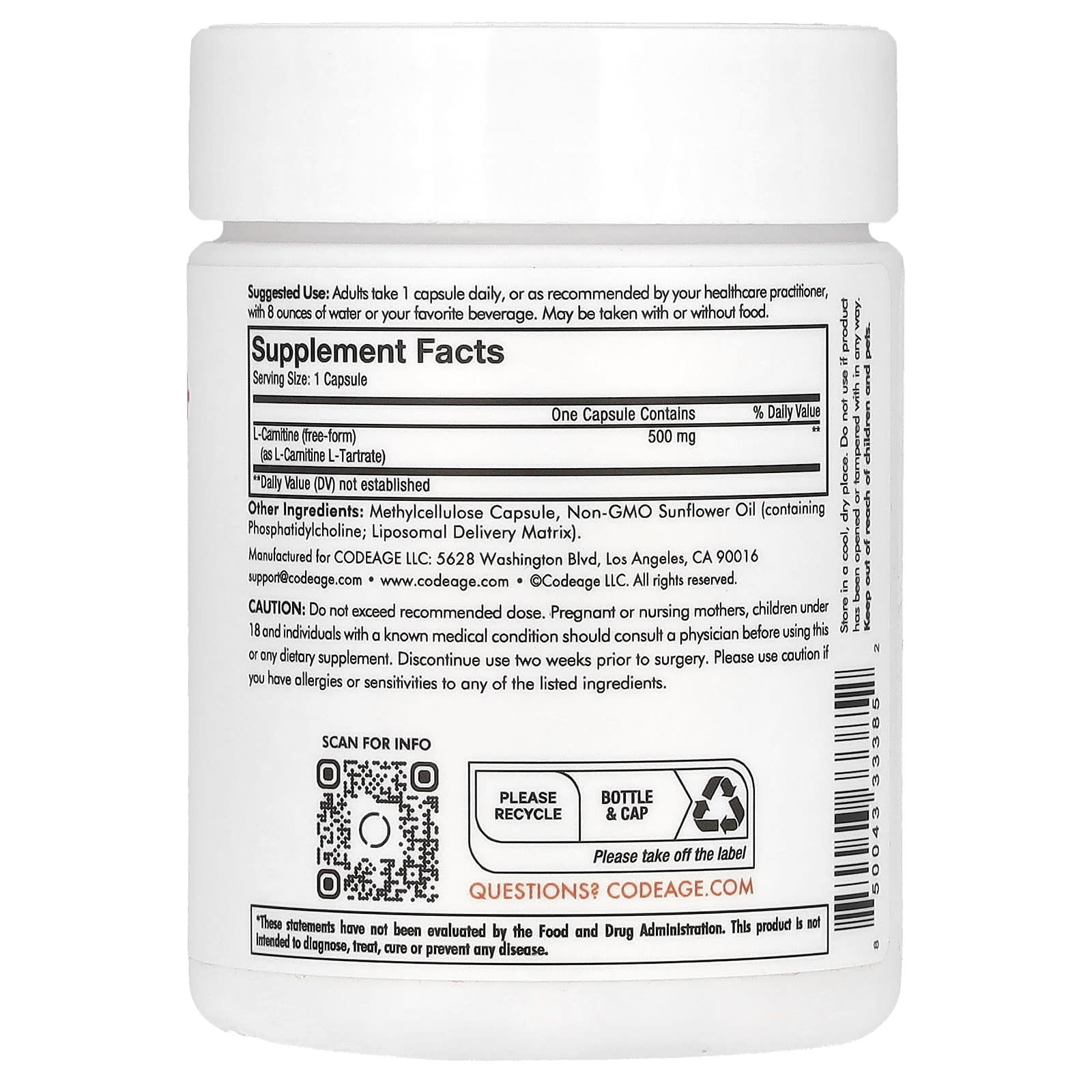 Codeage L-Carnitina+ Lipossomal 500 mg 90 Cápsulas – Codeage Suplementos Aminoácidos L-carnitina.