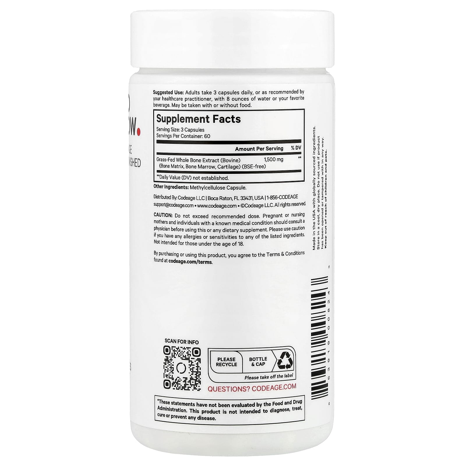 Codeage Medula Óssea de Gado Criado no Pasto 180 Cápsulas Vegetais – Codeage Suplementos Ossos, Articulações e Cartilagem Suplementos de órgãos animais.