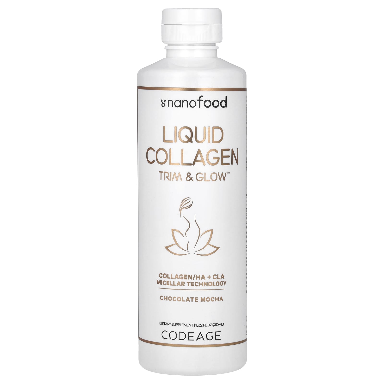 Codeage Nanofood Colágeno Líquido Aparência e Brilho Mocha de Chocolate 450 ml (1522 fl oz) – Codeage Suplementos Ossos, Articulações e Cartilagem Colágeno, Suplementos Controle de peso CLA.