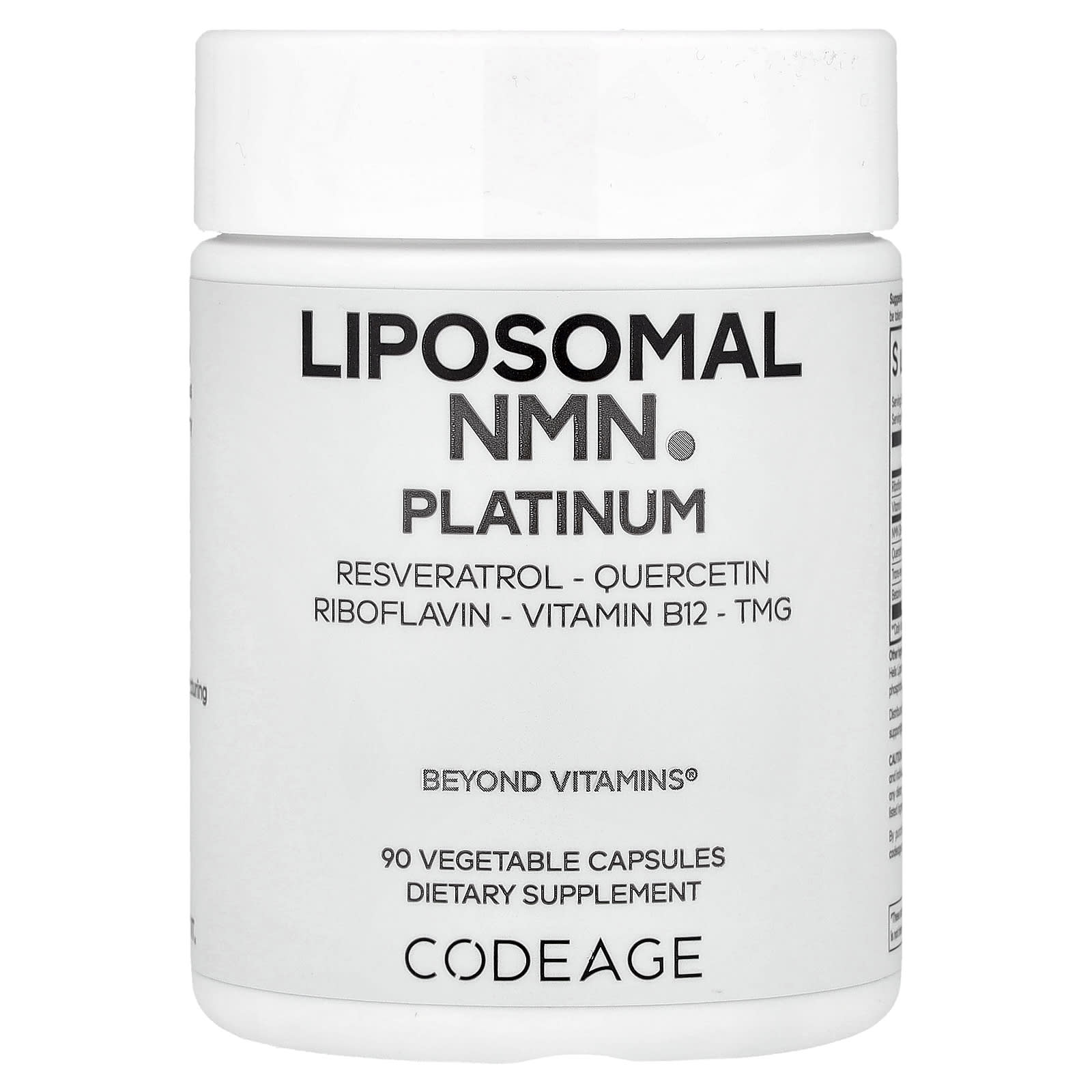 Codeage NMN Lipossomal Platina 90 Cápsulas Vegetais – Codeage Suplementos Vitaminas Vitamina B Vitamina B3 (Niacina) NAD+ (Nicotinamida Adenina Dinucleotídeo) Mononucleotídeo de Nicotinamida (NMN).