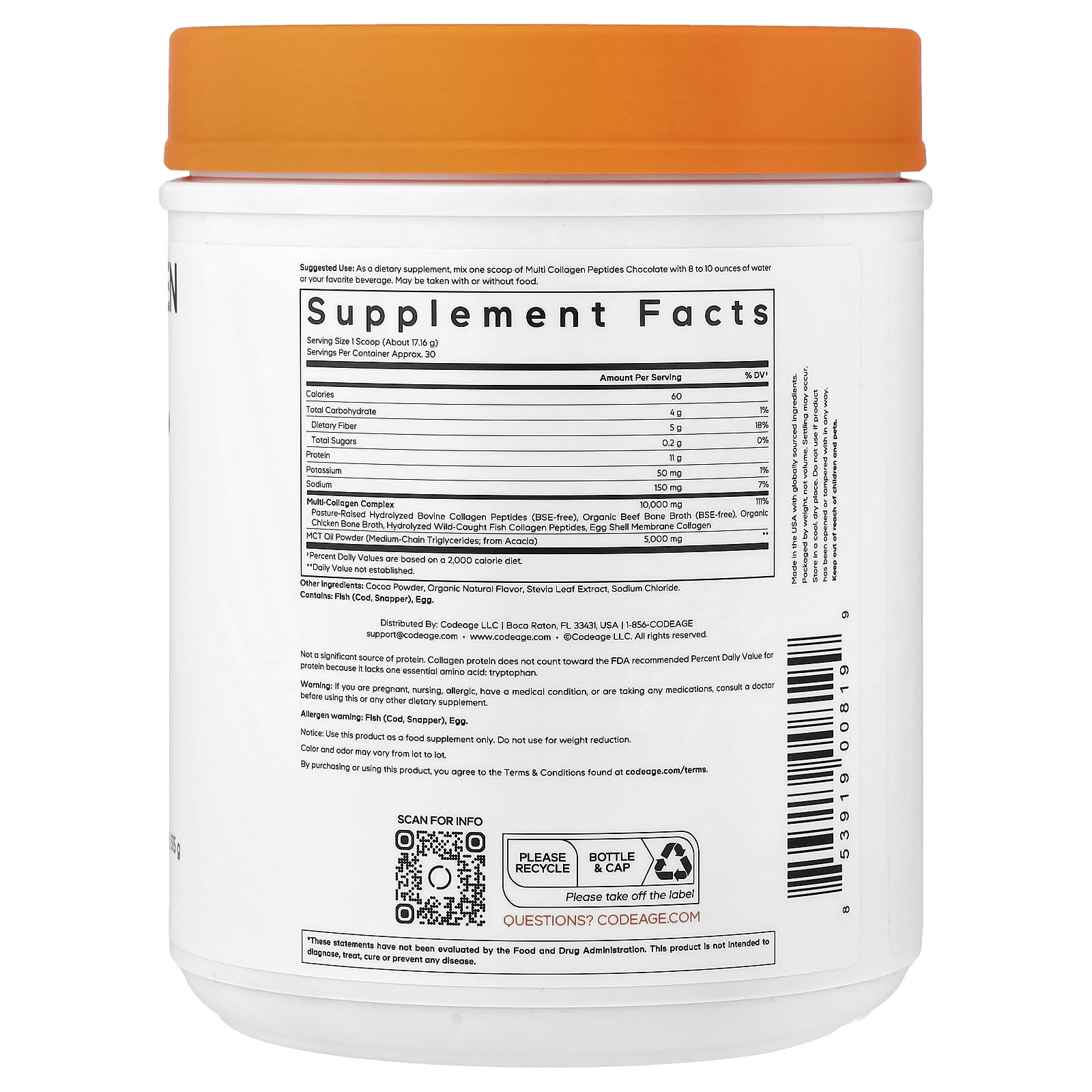 Codeage Peptídeos de Multicolágeno em Pó Chocolate 515 g (1817 oz) – Codeage Suplementos Ossos, Articulações e Cartilagem Colágeno, Suplementos.