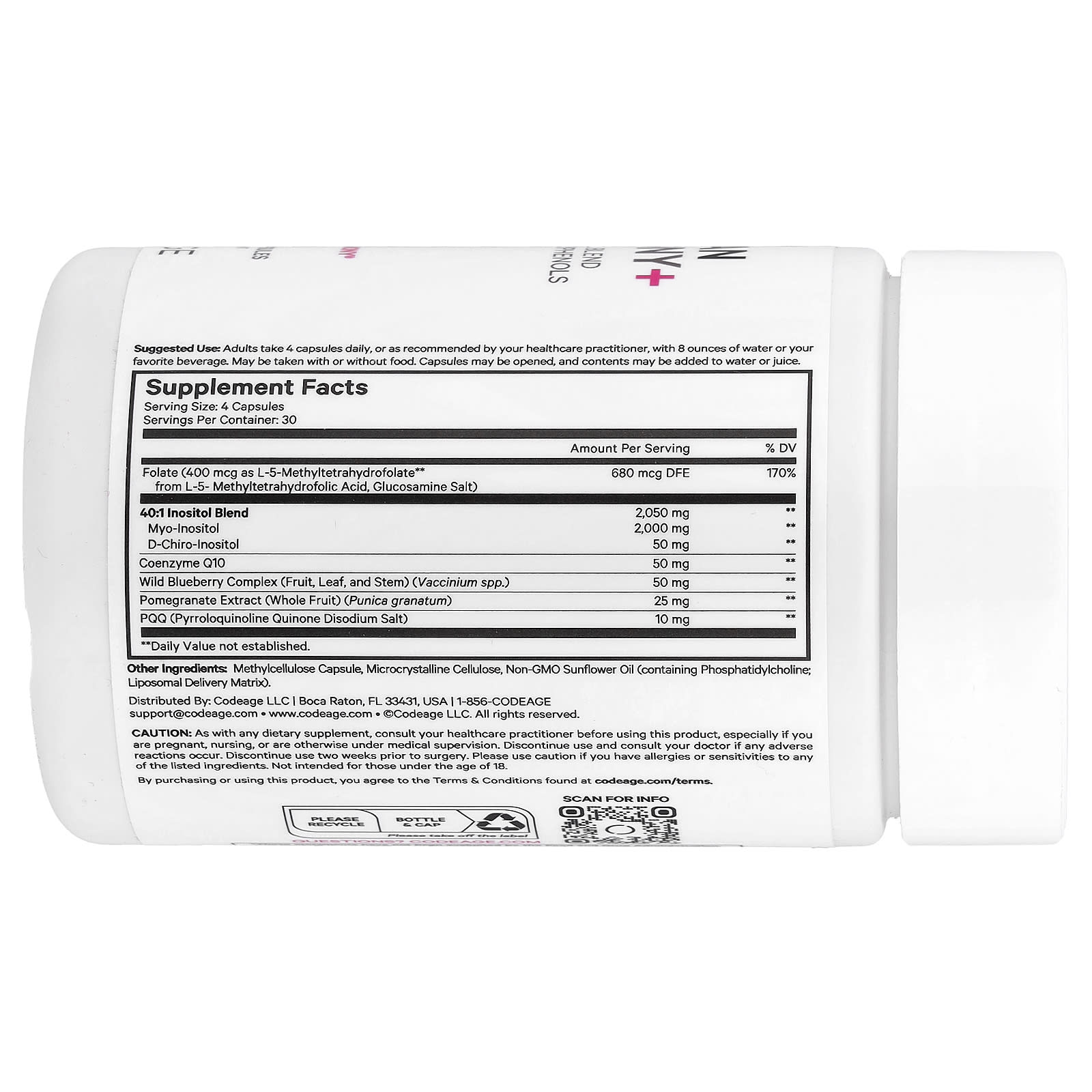 Codeage PQQ Ovarian Harmony+ 120 Cápsulas Vegetais – Codeage Suplementos Antioxidantes PQQ (pirroloquinolina quinona) Saúde da Mulher.