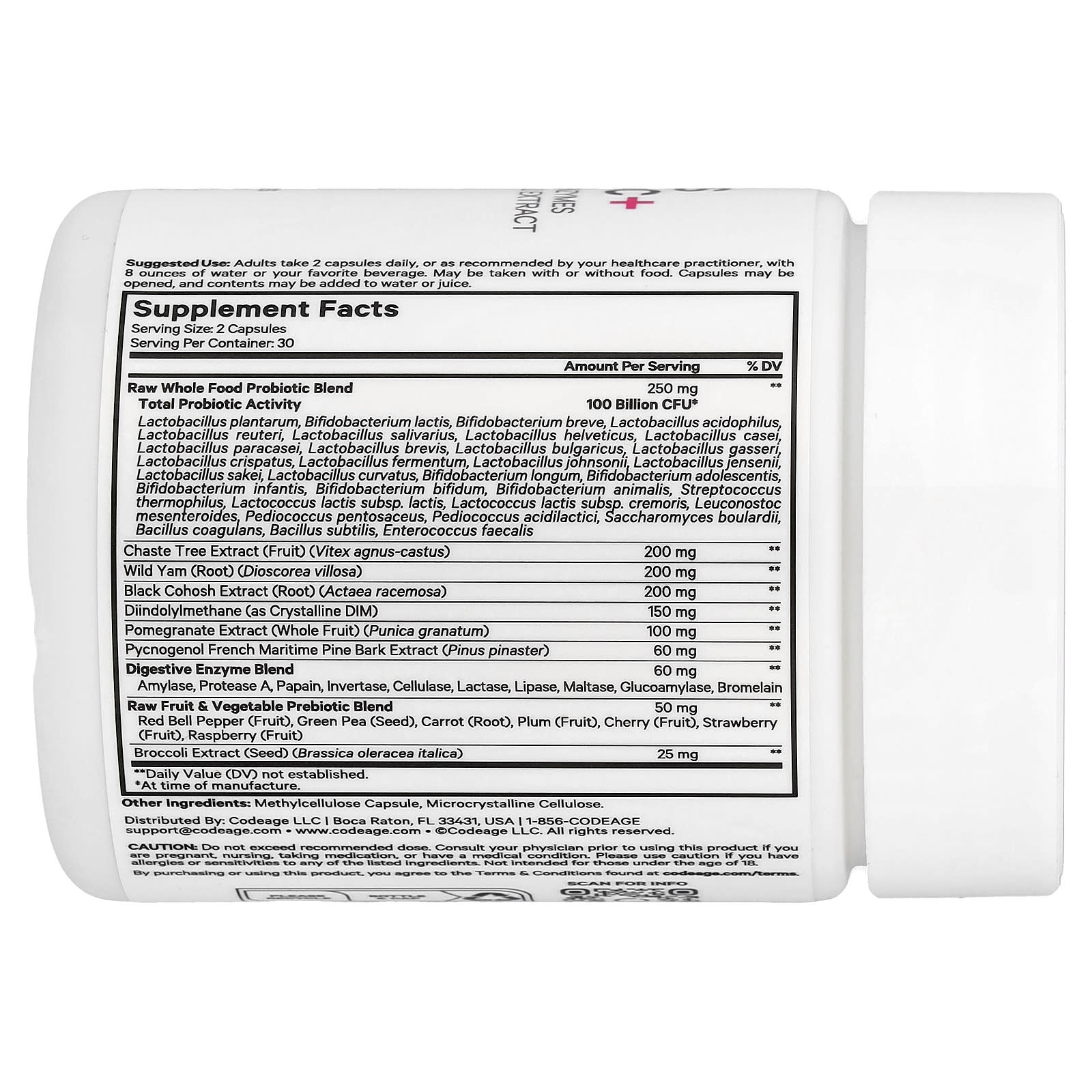 Codeage RAW Womens Probiotic+ 60 Cápsulas Vegetais