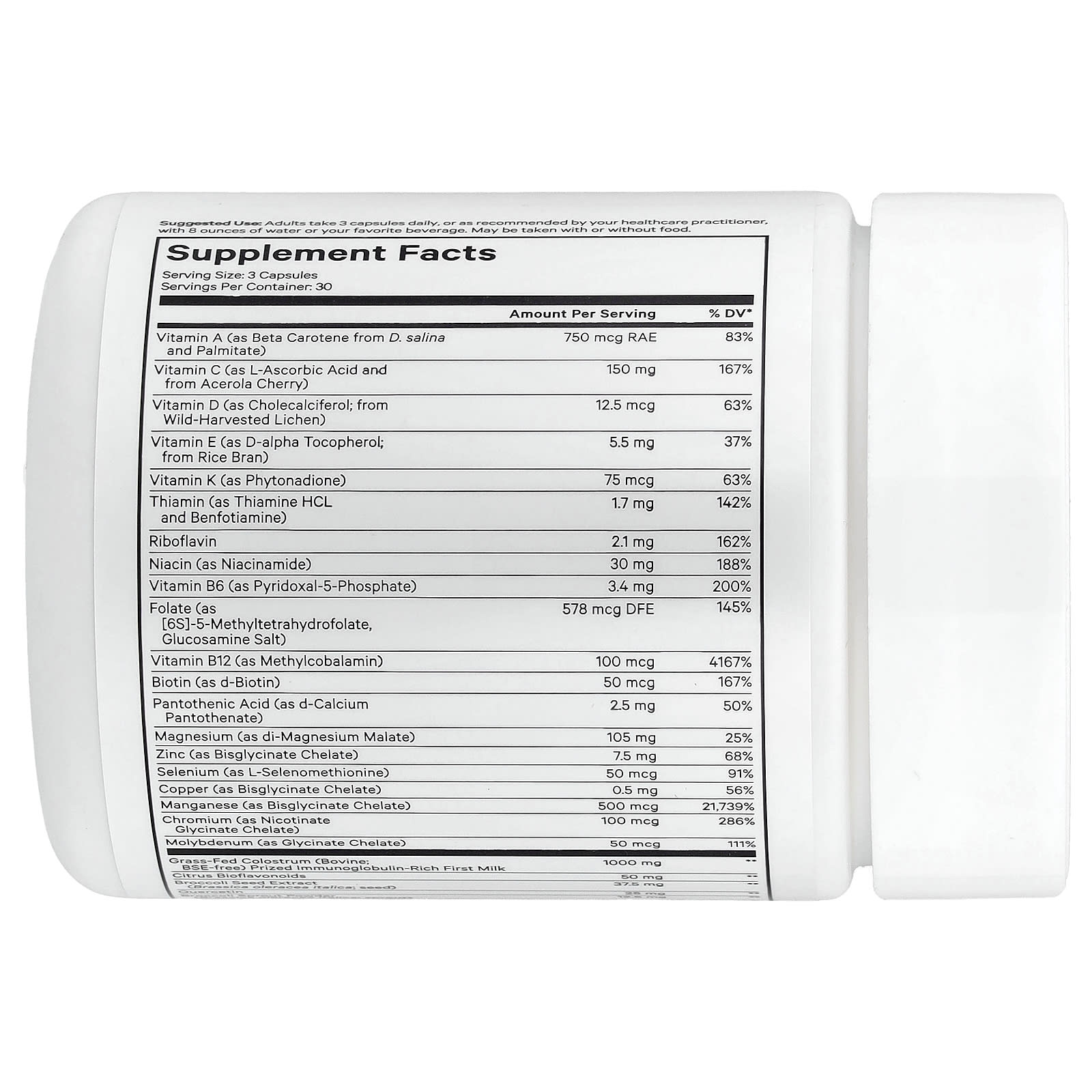 Adultos devem tomar 3 cápsulas diariamente, ou conforme recomendado pelo seu profissional de saúde, com 230 ml (8 oz) de água ou sua bebida favorita. Pode ser ingerido com ou sem alimentos.