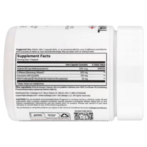 A fórmula do suplemento de NADH + Lipossomal da Codeage oferece uma mistura abrangente de NADH, uma coenzima envolvida na produção de energia celular. Esta fórmula também vem com vitamina B12, CoQ10 e Bioenergia Ribose®, uma forma patenteada de D-Ribose que pode ajudar a reforçar a produção de energia do corpo, promovendo a síntese de ATP. Este suplemento de NADH apresenta uma distribuição lipossomal para ajudar com sua biodisponibilidade.