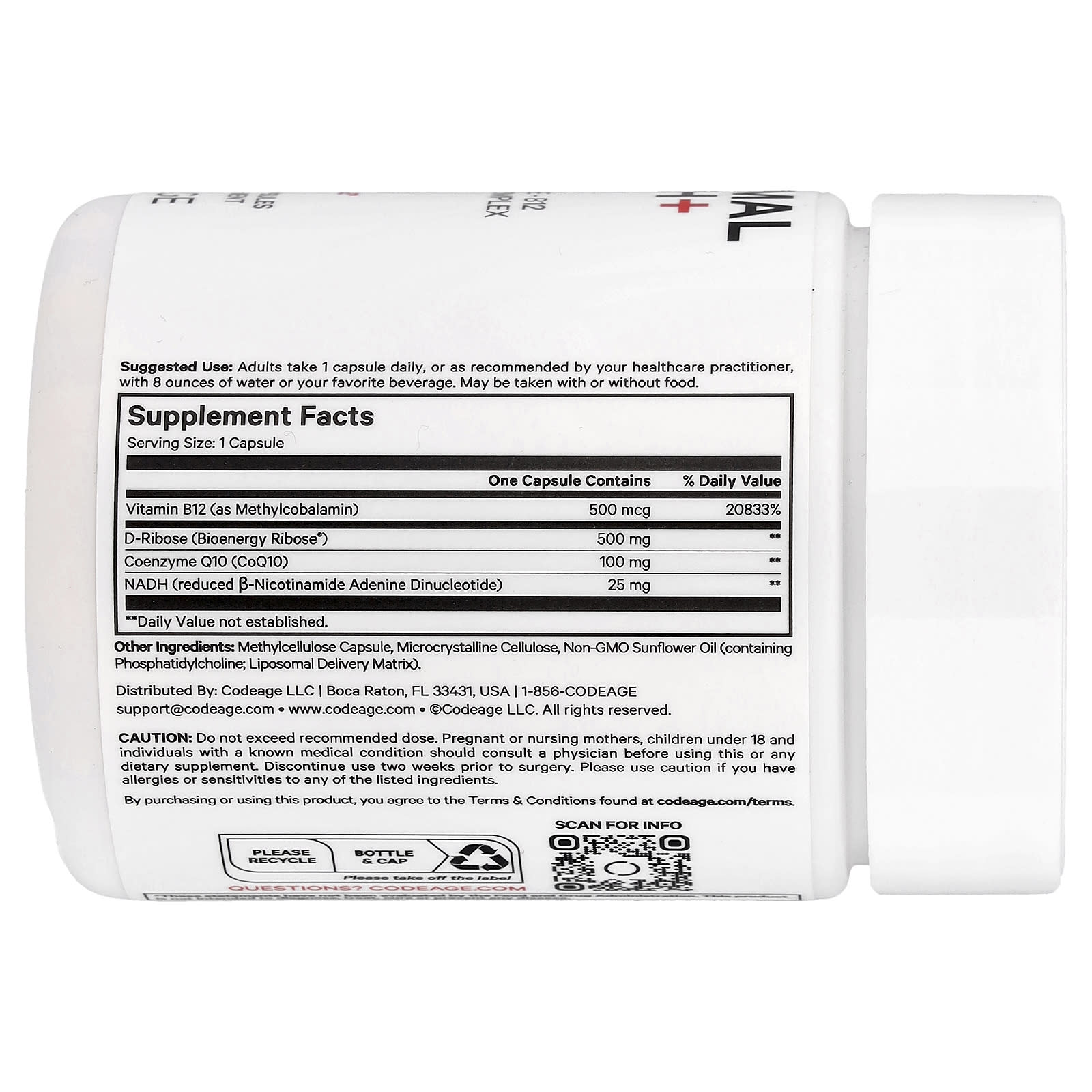 Codeage Sport NADH+ Lipossomal 60 Cápsulas Vegetais – Codeage Suplementos Vitaminas Vitamina B Vitamina B3 (Niacina) NADH.