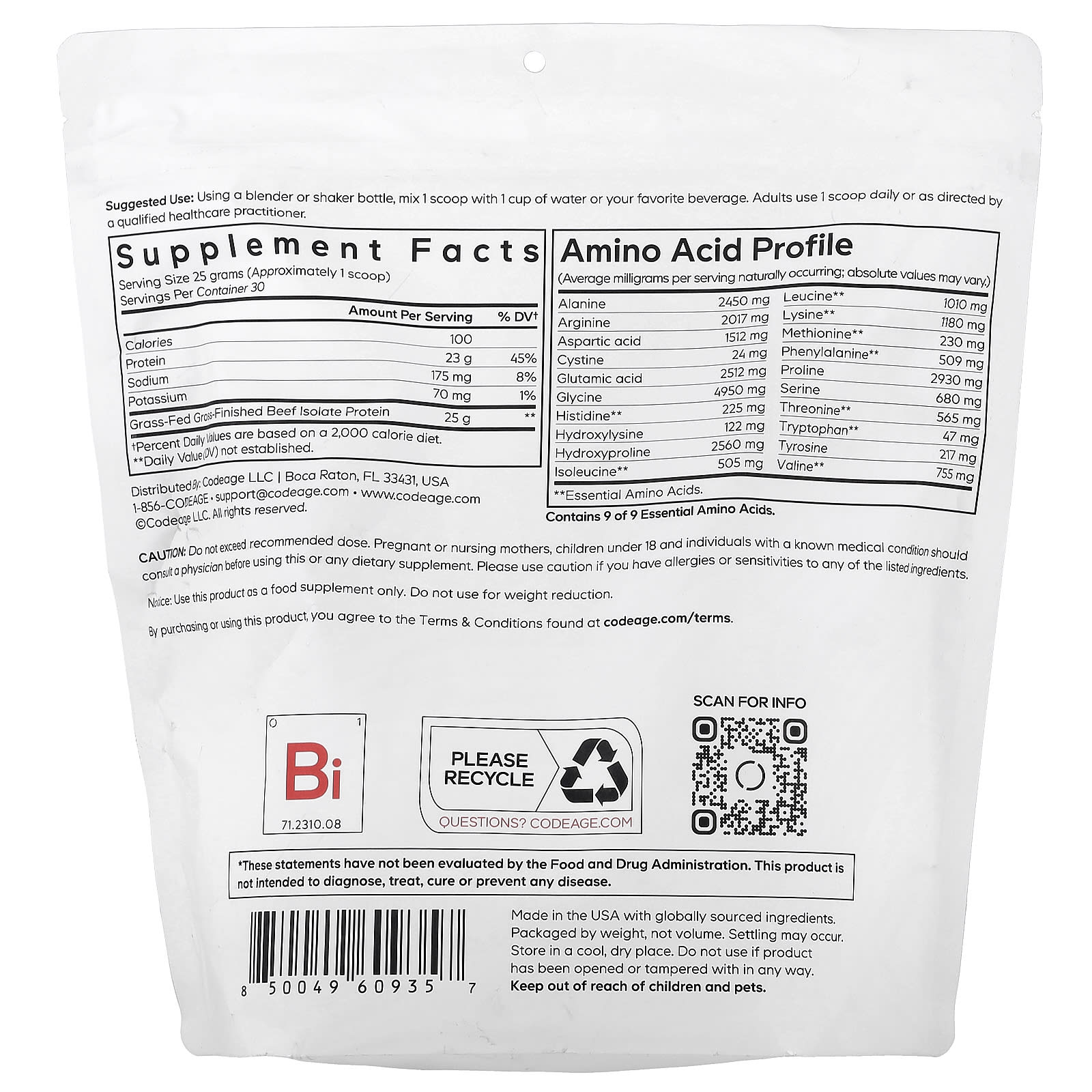 Codeage Sport Proteína em Pó Isolada da Carne Sem Sabor 750 g (165 lb) – Codeage Nutrição Esportiva Proteína Proteína Animal Proteína De Carne.