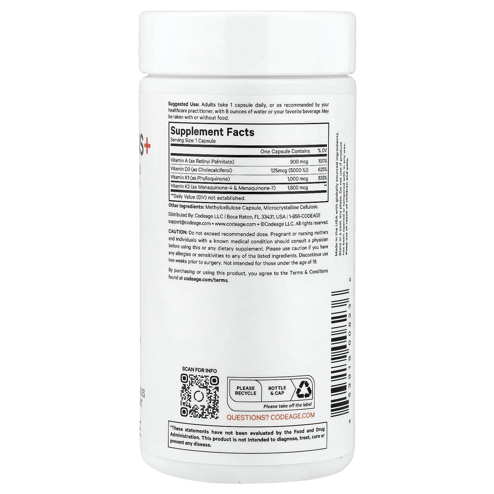 Codeage Vitaminas A D e K+ 180 Cápsulas Vegetais