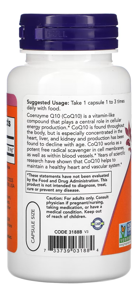 Coenzima CoQ10 30mg Now Foods 120 Veg Cáps Produto Importado