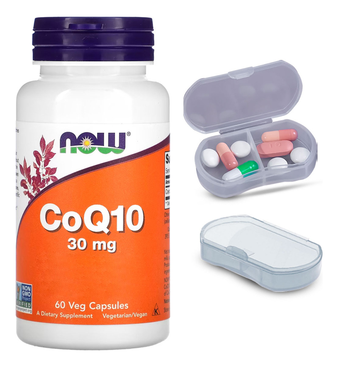 Kit Coenzima CoQ10 30mg Now Foods 60 Caps + Porta Cápsulas Suporte Central: A Coenzima CoQ10 30mg da Now Foods é formulada para apoiar o metabolismo energético, sendo uma escolha popular para quem busca um complemento para seu estilo de vida dinâmico. Este nutriente essencial é conhecido por seu papel no suporte ao funcionamento eficiente das células. Formato Conveniente: As cápsulas vegetais de 30mg oferecem uma maneira prática e direta de incluir a CoQ10 em sua rotina. Projetadas para serem fáceis de engolir, elas fornecem uma dosagem precisa, garantindo uma utilização conveniente e eficiente. Qualidade Internacional e Disponibilidade: Este suplemento importado passa pelos mais rigorosos padrões de qualidade internacionais. Além disso, está disponível para entrega imediata, o que significa que você pode começar a incorporá-lo em sua rotina sem atrasos. Porta Cápsulas com Duas Repartições: O kit também inclui um porta-cápsulas prático, dividido em duas seções internas. Isso permite uma organização eficaz e separada de diferentes tipos de cápsulas ou pílulas. Composição Pura e Eficaz: Cada cápsula contém 30mg de Coenzima CoQ10, sem aditivos desnecessários. A formulação é focada na pureza e eficácia, garantindo que você receba um suplemento de alta qualidade, concentrado e benéfico. VALIDADE LONGA