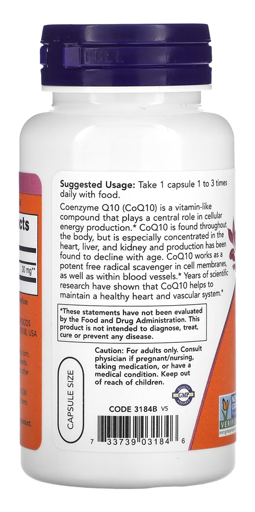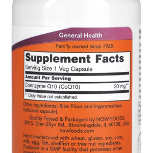 Coenzima CoQ10 30mg Now Foods 60 Veg Caps Produto Importado