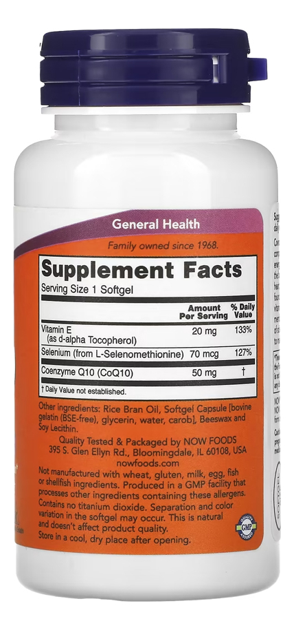 Coenzima Coq10 50mg Now Foods + Vit E 100Soft Produto Importado