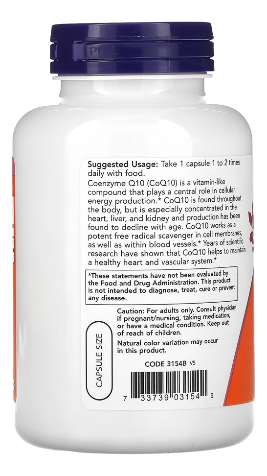 Coenzima Coq10 60mg Now Foods 180 Caps + Porta Cápsulas