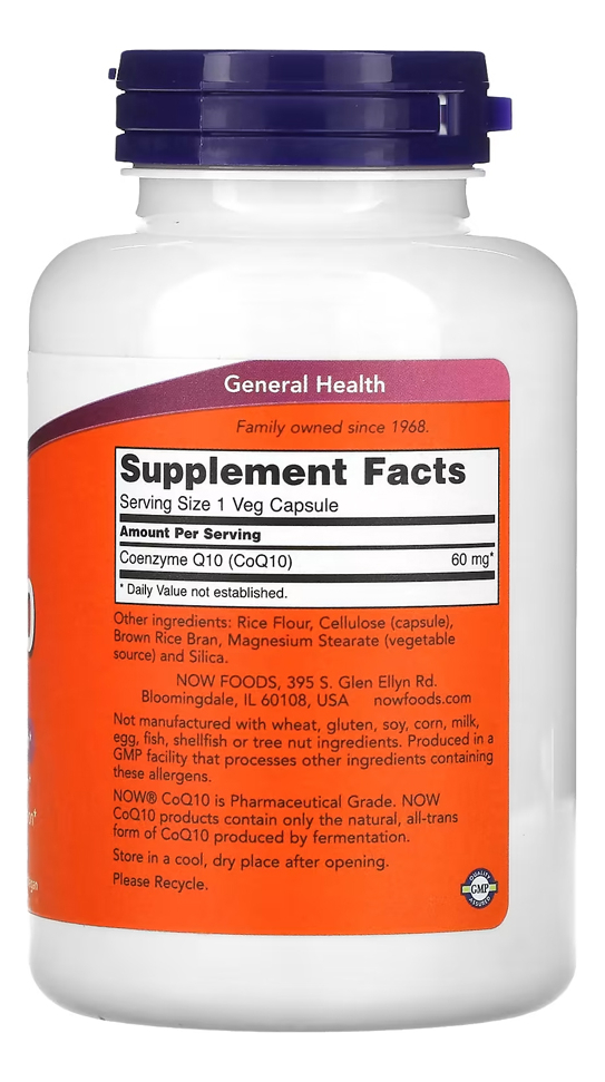Coenzima CoQ10 60mg Now Foods 180 Cápsulas Produto Importado