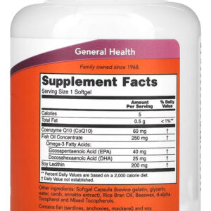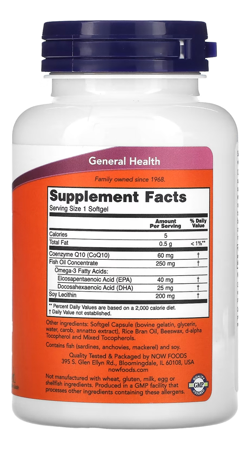 Coenzima CoQ10 60mg + Omega-3 Now Foods 120 Softgels Produto Importado