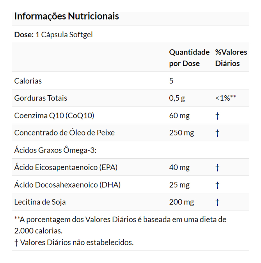 4. Integração Simples na Rotina Diária: A Coenzima CoQ10 60mg + Omega-3 da Now Foods pode ser facilmente incorporada à sua rotina diária. Cada softgel contém a dosagem ideal, tornando o consumo diário simples e sem complicação.