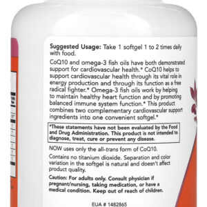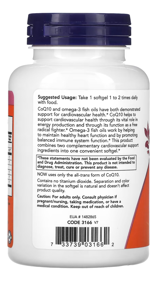 Kit Coenzima CoQ10 60mg+Omega3 Now Foods 120Sof + Porta Cápsulas Suporte Combinado de CoQ10 e Omega-3: A Coenzima CoQ10 60mg combinada com Omega-3 da Now Foods oferece um suporte duplo em um único produto. Ideal para quem busca os benefícios tanto da CoQ10 quanto do Omega-3, este suplemento é uma escolha prática e eficiente. Softgels Fáceis de Consumir: Contendo 120 softgels, este suplemento é apresentado de maneira conveniente e fácil de ingerir. As cápsulas softgel facilitam a absorção dos nutrientes e são ideais para inclusão regular na sua dieta. Qualidade Importada com Disponibilidade Imediata: Este produto é importado, garantindo uma alta qualidade e pureza. Com a vantagem da pronta entrega, você pode começar a aproveitar os benefícios desta combinação única sem demoras. Porta Cápsulas com Duas Repartições: O kit também inclui um porta-cápsulas prático, dividido em duas seções internas. Isso permite uma organização eficaz e separada de diferentes tipos de cápsulas ou pílulas. Composição Nutritiva e Eficiente: Cada softgel contém 60mg de Coenzima CoQ10 e Omega-3, proporcionando uma combinação nutritiva e eficiente. Este produto é livre de aditivos desnecessários, garantindo que você receba apenas os ingredientes essenciais de forma pura. Validade longa