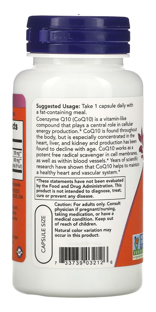 Coenzima CoQ10 Now Foods 100mg 90 Veg Caps Importado Nutrição Otimizada