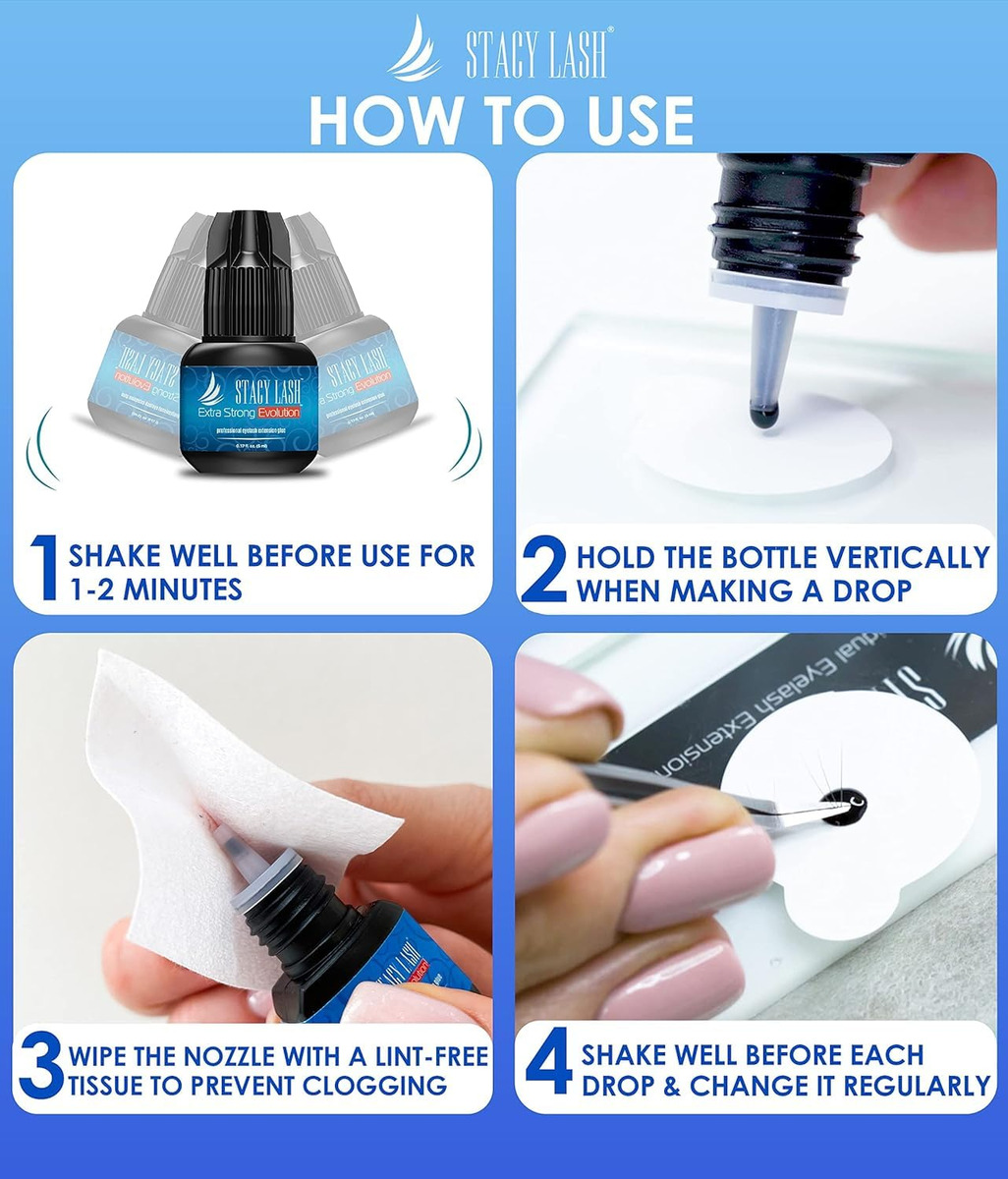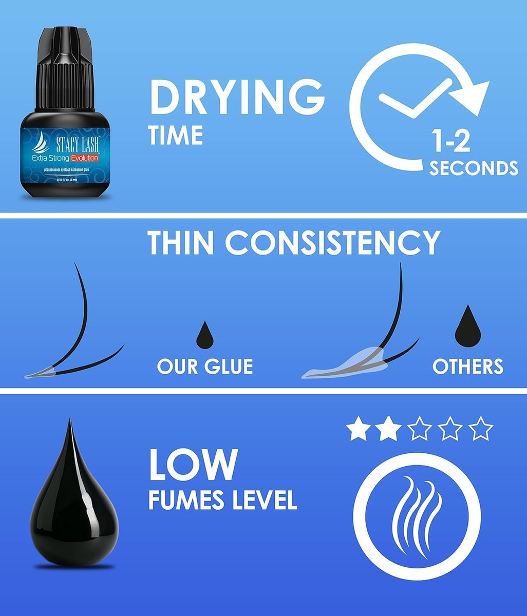 Cola de extensão de cílios Extra Strong Evolution Stacy Lash (0,17 fl.oz/5 ml) /1-2 segundos de seca/retenção de 8 semanas/suprimentos profissionais/adesivo preto – cuidado! Somente para uso em salão de beleza! Para cílios postiços semipermanentes. Nunca o use para autoaplicação/clusters ou tiras de cílios! Leia a descrição do produto com atenção, o uso indevido do produto pode causar reações – Extra Strong Evolution é uma versão avançada da cola de extensão de cílios Stacy Lash Extra Strong com maior retenção (até 8 semanas no laboratório do fabricante). Esta cola foi projetada exclusivamente para uso profissional por técnicos certificados de extensão de cílios. – Tempo de secagem rápido de 1 a 2 segundos. Este adesivo para cílios foi projetado para artistas de cílios altamente qualificados. O tempo de secagem rápido ajuda a acelerar os procedimentos de extensão dos cílios. A melhor faixa de umidade para trabalhar com cola extra forte é RH 50-70%. – Baixa viscosidade – O adesivo Stacy Lash Lightning Speed tem uma consistência de baixíssima viscosidade, permitindo que os artistas de cílios trabalhem significativamente mais rápido e evitando que os cílios se aglutinem. – A cola semipermanente para cílios Super Packaging é vendida em uma embalagem selada para preservar o máximo de frescor da cola e garantir a melhor aderência. Fórmula de longa duração.