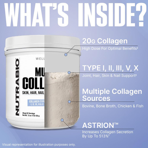Descubra o segredo da beleza radiante e da saúde sólida com o pó de peptídeos multicolágeno NutraBio, um pó de colágeno hidrolisado premium que promove o brilho do cabelo e da pele, promove a saúde das articulações e dos ossos e melhora a força e o crescimento das unhas; feita com colágeno e proteína em pó, esta fórmula poderosa é perfeita para mulheres e homens, oferecendo 20 porções de puro bem-estar em cada recipiente. – Transforme sua rotina de beleza com colágeno e proteína em pó que promovem uma pele radiante, cabelos mais fortes e unhas mais saudáveis, tornando-os um complemento perfeito para quem procura uma aparência radiante e bem-estar geral. – Aproveite a versatilidade do pó de colágeno sem sabor que se mistura facilmente com suas bebidas ou receitas favoritas, permitindo que você melhore sua nutrição sem alterar o sabor das refeições. – Aproveite os benefícios de melhorar a saúde e a mobilidade das articulações, pois nossa fórmula premium apóia seu estilo de vida ativo e ajuda você a se manter ágil e sem dor o dia todo. – Melhore seu regime diário de bem-estar com um produto desenvolvido para mulheres e homens, garantindo que todos possam desfrutar dos benefícios notáveis de nossa fórmula rica em colágeno. – Apoiamos nosso produto com uma garantia de 100% de satisfação; se você não estiver completamente satisfeito com nossos peptídeos de colágeno sem sabor, basta nos informar para obter um reembolso total.