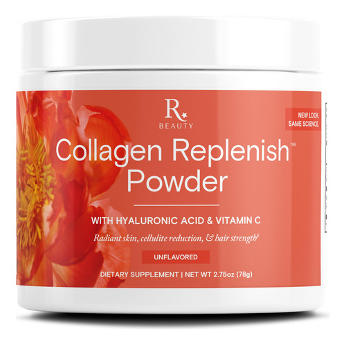 Pó de reposição de colágeno Reserveage Beauty com ácido hialurônico e vitamina C – Colágeno sem sabor para cuidados com a pele radiante, crescimento capilar e redução da celulite – Mistura-se facilmente em líquidos ou smoothies – 2,75 onças –