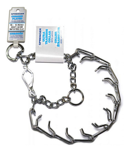 A coleira de treinamento para cães Coastal Pet Herm Sprenger é bastante fácil de usar e possui um encaixe de liberação rápida que você pode operar usando apenas uma mão. Prática e segura, esta coleira de treinamento é feita de aço inoxidável cromado de alta qualidade. A coleira não mancha, enferruja nem quebra mesmo após anos de uso. Feita de aço inoxidável de alta qualidade. Mede 18 polegadas de comprimento. Coleira de treinamento cromada com encaixe. Segura e prática