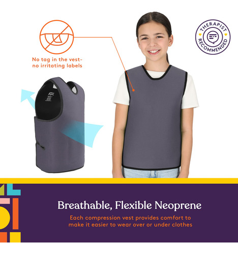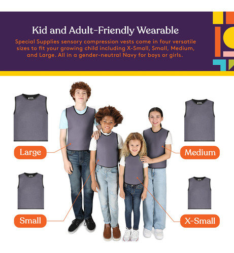 Suprimentos especiais para crianças de todos os tamanhos: os coletes de compressão sensorial vêm em cinco tamanhos versáteis para seu filho em crescimento, incluindo GG, pequeno, médio e grande; tudo em um estilo azul marinho neutro para meninos ou meninas. Uso em casa, em viagens e na sala de aula. Nosso colete sensorial versátil pode ser usado onde e quando seu filho precisar se acalmar ou se sentir mais no controle, inclusive em longas viagens de carro, na sala de aula com amigos ou professores ou quando seu filho precisar se acalmar ou se sentir mais no controle, inclusive em longas viagens de carro, na sala de aula com amigos ou professores ou quando seu filho precisar se acalmar ou se sentir mais no controle. Macias, respiráveis e solidárias. Projetadas para se enrolar confortavelmente sobre os ombros e ao redor da barriga O colete para crianças permite que elas se movam, brinquem e vivenciem a vida com mobilidade natural, enquanto se mantêm frescas e relaxadas em qualquer lugar. Suprimentos especiais para crianças de todos os tamanhos. Os coletes de compressão sensorial vêm em cinco tamanhos versáteis para crianças em crescimento, incluindo GG, pequeno, médio e grande; tudo em um estilo azul marinho neutro para meninos ou meninas
