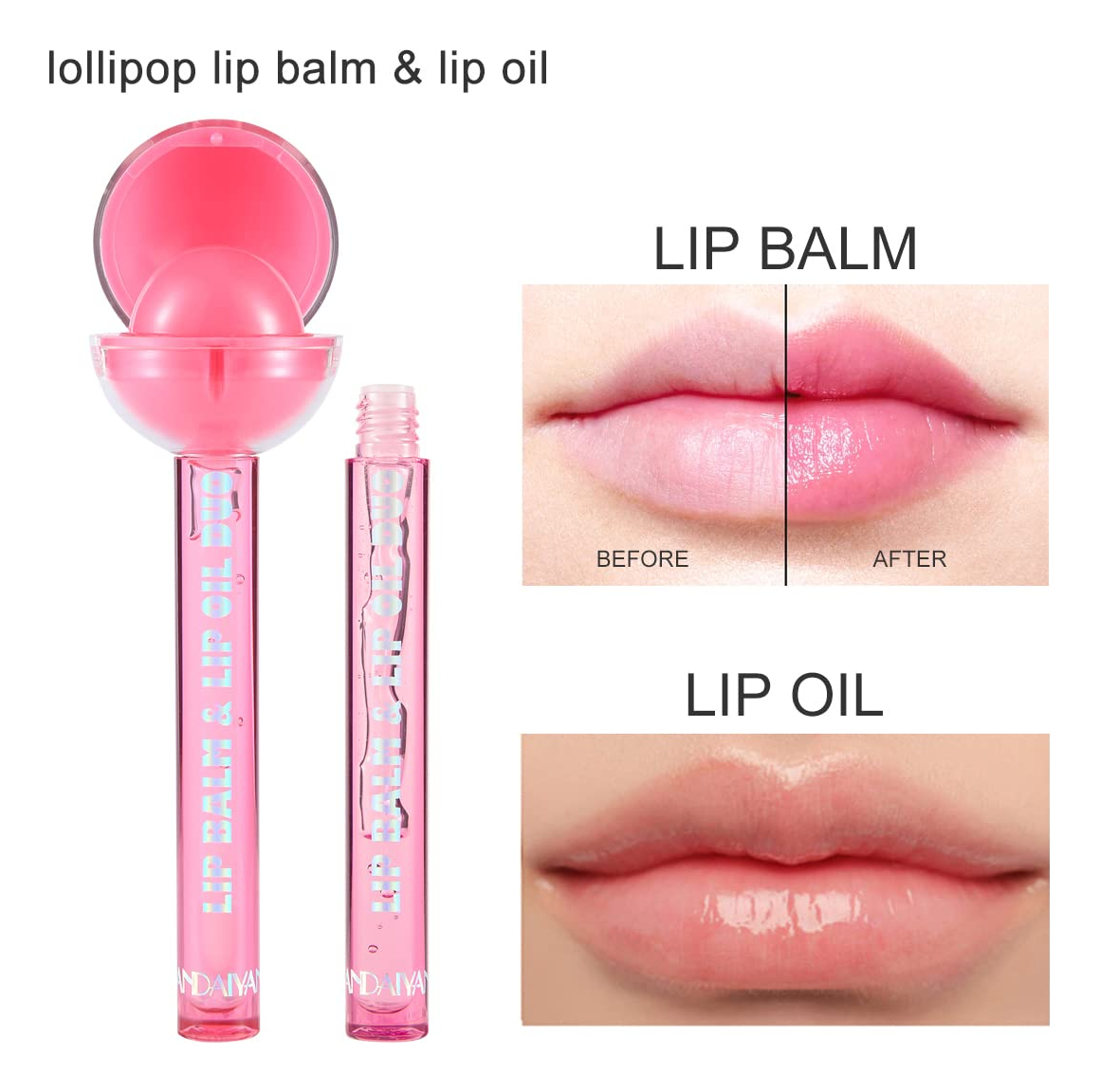 O Lollipop Lipgloss é uma combinação labial indispensável, com um protetor labial hidratante e aquele brilho labial pronto para passar. Em forma de pirulito, estamos aqui para adoçar seriamente sua rotina diária. Basta abrir a parte superior e passar em nosso protetor labial formulado exclusivamente para sentir aquela sensação suave enquanto relaxa, depois aumentar o glamour desparafusando a alça para aplicar nosso brilho labial alucinante. Cores doces brilhantes com uma variedade de cores para escolher para satisfazer esse pequeno desejo doce. Chamele Lip Gloss. O protetor labial mudará de cor de acordo com o valor de PH e a temperatura. Solte a alça para obter um brilho labial claro e brilhante. Vire o protetor labial por cima. Tire a alça do brilho labial. – Combinação de protetor labial e óleo labial: uma dupla labial inovadora em forma de pirulito com um bálsamo hidratante sedoso na parte superior e brilho labial de alto brilho dentro do tubo. Macio e sedoso, nosso brilho labial está disponível em uma ampla variedade de sabores suntuosos. – 6 tipos de brilho labial multiacabado: brilho labial de alto brilho e não pegajoso com toda a cor e hidratação que você deseja. – Lábios beijáveis: nosso brilho labial permanece suave e cremoso e nunca é pegajoso, deixando seus lábios macios, flexíveis e beijáveis. Nosso gloss é um charmoso lábio gelatinoso. Experimente todos os nossos tons deliciosos. – IDEAL PARA VIAGENS: Em primeiro lugar, nosso brilho labial Chamele é uma combinação de brilho e protetor labial. Você não só pode usá-lo sozinho, maquiagem nude, hidratante. Além disso, use sobreposições, brilho e femininas. É perfeito para viajar com seus tamanhos pequenos para manter seus lábios perfeitamente carnudos em qualquer lugar. – Presente inovador para mulheres amantes de meninas: leve a diversão dos pirulitos Chamele com você aonde quer que vá! O recipiente de brilho labial fofo é moldado para se parecer exatamente com um pirulito real. O “bastão” do pirulito sai e é o pincel de aplicação, enquanto a cabeça do pirulito é o verdadeiro recipiente do brilho labial. Este gloss fofo e divertido é um ótimo presente inovador para quem gosta de doces!
