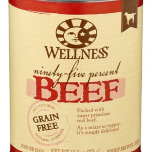 A ração enlatada de 95% de carne bovina para cães Wellness é uma ração úmida criada para fornecer aos cães nutrição rica em proteínas e de alta qualidade. Feita com 95% de carne bovina real, esta receita sem grãos é ideal para cães de todas as raças e fases da vida.