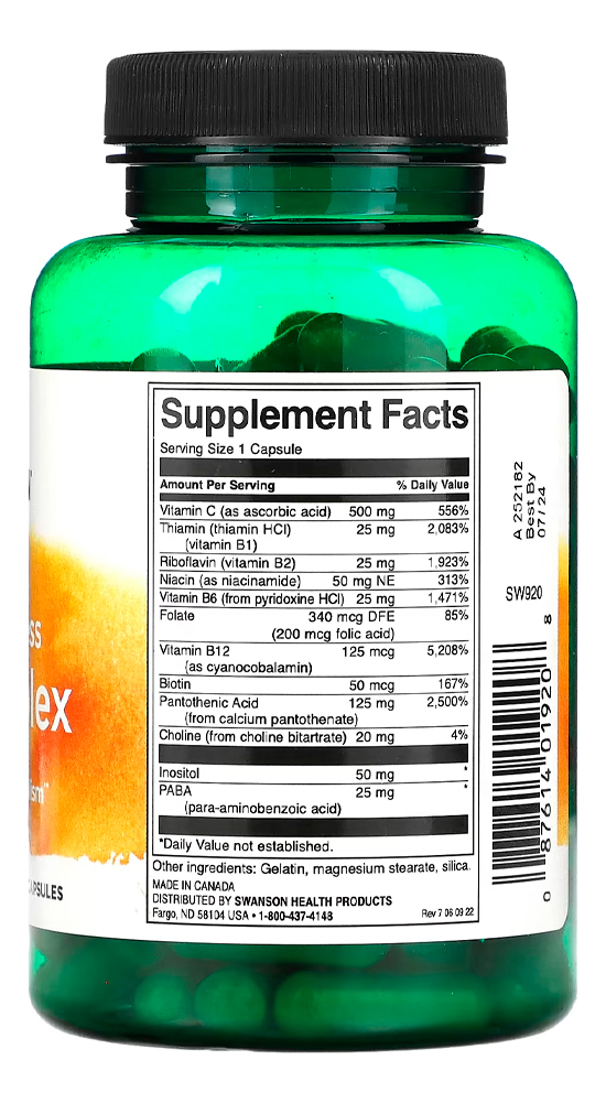 Complexo B com Vitamina C Swanson 100 Caps Importado