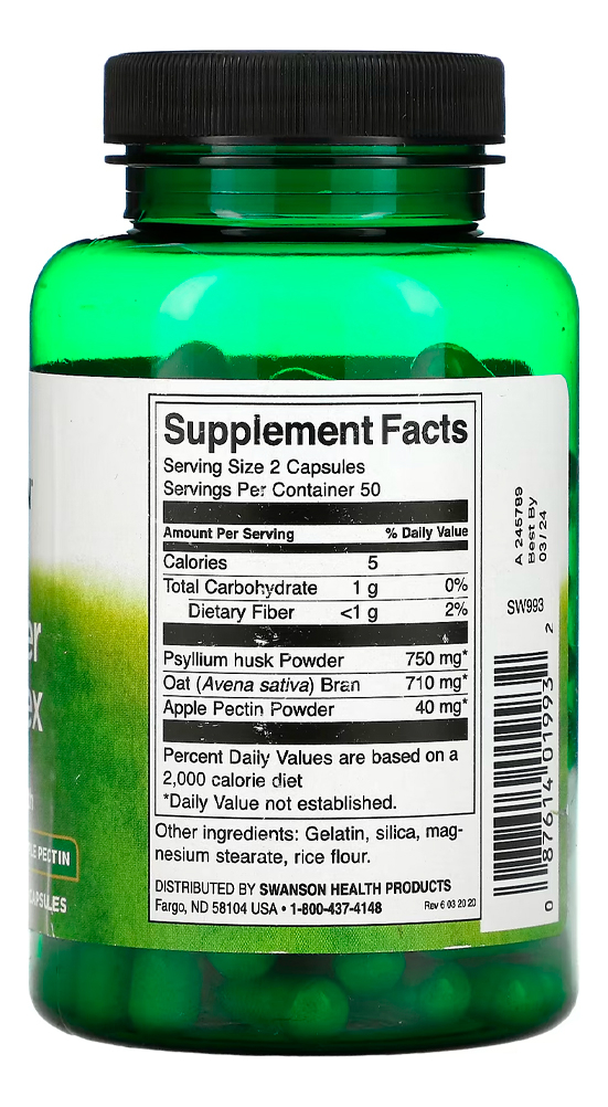 Complexo Tri-Fibra Swanson 100 Cápsulas Importado