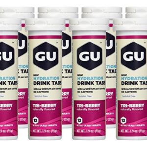 Os comprimidos de bebida eletrolítica de hidratação Gu Energy fornecem um impulso de hidratação ao suplementar a água com eletrólitos e reabastecer o sódio perdido pelo suor, para melhorar o desempenho e a recuperação durante o treinamento e a corrida. Cada comprimido de bebida contém apenas 10 calorias, além de 320 miligramas de sódio e 55 miligramas de potássio para ajudar a manter o equilíbrio hídrico e melhorar a função muscular, pois os eletrólitos se esgotam com exercícios e esforços. Os comprimidos são facilmente dissolvidos em 16 onças de água, perfeitos para colocar em uma garrafa esportiva ou garrafa de bicicleta para hidratação em qualquer lugar, antes do treino e ao correr, andar de bicicleta ou se exercitar na academia. Os comprimidos leves e efervescentes também são apropriados para o uso diário, durante doenças, viagens e clima quente, ou sempre que for necessário um aumento no sustento ou na recuperação. Os comprimidos de bebida eletrolítica de hidratação Gu Energy vêm em dois tamanhos: uma caixa de 4 unidades ou uma caixa de 8 unidades de tubos portáteis, que cabem facilmente em bolsos, camisetas e cintos de corrida. Cada tubo contém 12 comprimidos. Todos os sabores são sem cafeína e feitos com ingredientes veganos.