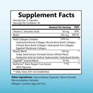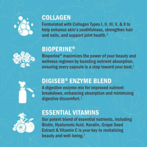 Collagen Pills for Women (Types I II III V X) with Vitamin C, Hyaluronic Acid and Biotin – Healthy Skin Hair Nails Vitamins Supplement Plus Digestive Enzymes for Max Absorption, 135 Collagen Capsules Collagen Pills for Women (Types I II III V X) with Vitamin C, Hyaluronic Acid and Biotin – Healthy Skin Hair Nails Supplement Plus Digestive Enzymes for Max Absorption, 135 Collagen Peptides Capsules – All-In-One Multi Collagen Capsules for Women: With hydrolyzed collagen peptides (types I, II, III, V, and X) plus vitamin C, biotin, keratin, digestive enzymes and hyaluronic acid, our collagen supplement for women is the smart and convenient alternative to collagen powder – Vibrant, Youthful Skin: Vitamin C is a crucial cofactor in collagen synthesis, promoting skin elasticity and reducing the appearance of fine lines and wrinkles, while hyaluronic acid supports moisture retention for a radiant complexion – Healthy Hair and Nails: Keratin, a key protein found in hair and nails, contributes to stronger, healthier hair and nail strands, while biotin aids in the prevention of hair loss and promotes overall hair health – Nourishing Joint Support: Collagen and vitamin C supports joint, cartilage and tissue health and function – Enhanced Gut Health: Collagen helps maintain the integrity of the gut lining while digestive enzymes support womens gut health, digestion and nutrient absorption